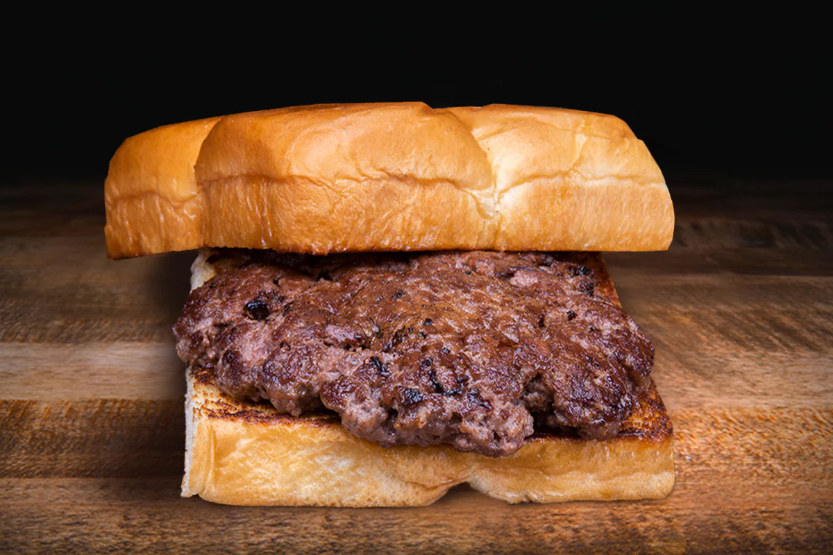 Smashed Creekstone Farms beef patty, pickles, diced onions & belly sauce; on a Big Marty's sesame seed bun