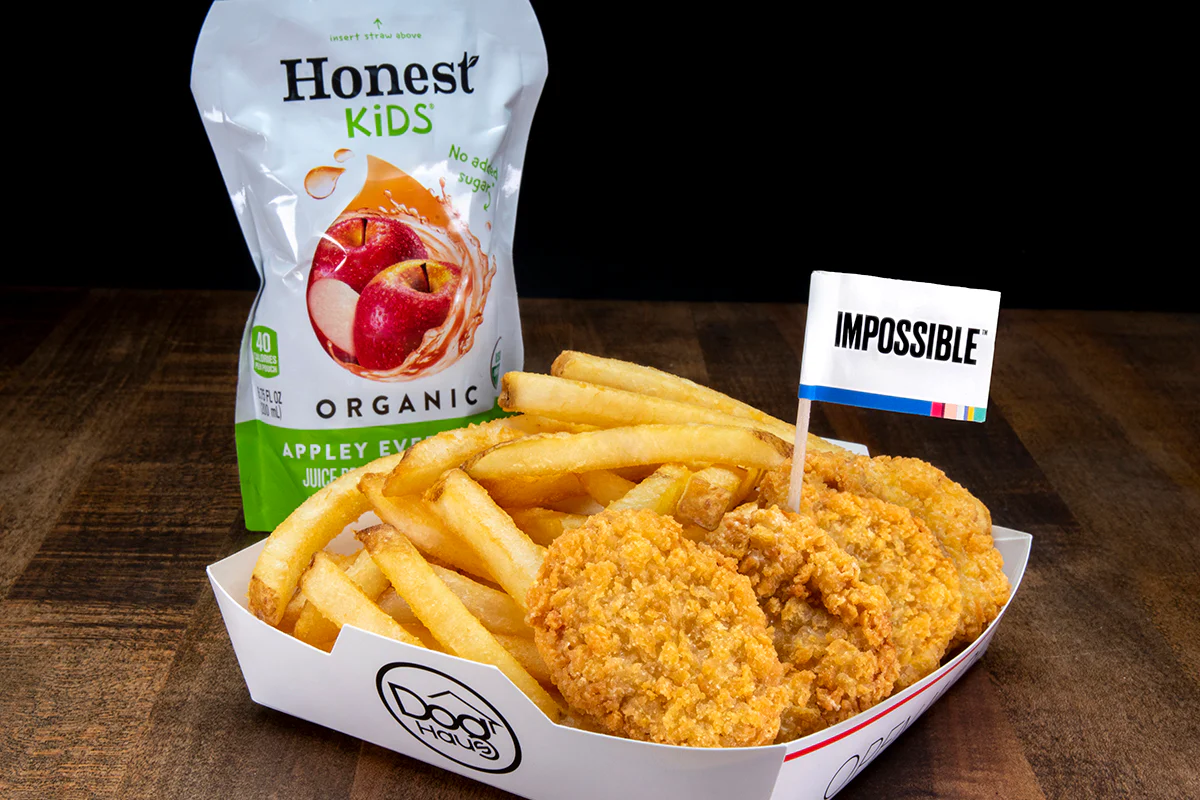 Four Impossible chicken nuggets with fries or tater tots and a choice of drink.