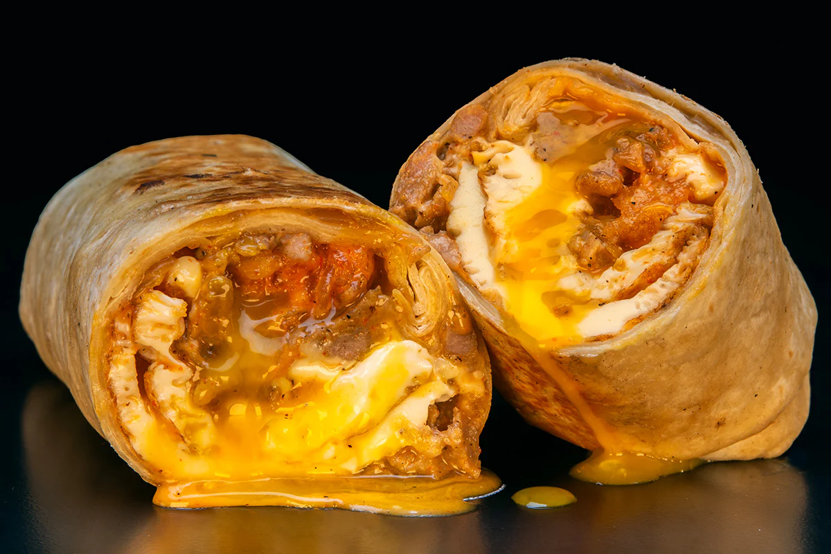 3 fresh eggs, cajun seasoned sausage, white american cheese, caramelized onions, crispy spicy tots & chipotle aioli wrapped in a flour tortilla then grilled.