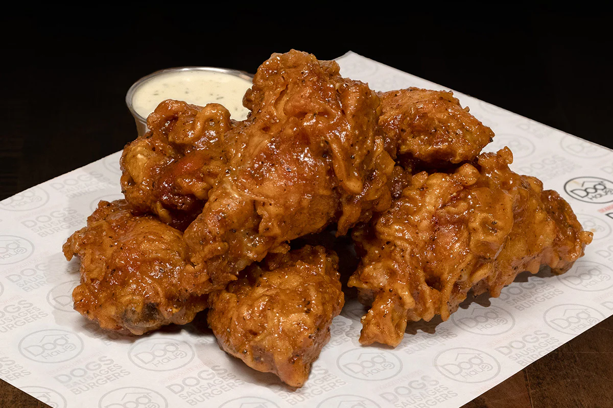 Six crispy wings smothered in Jake Paul’s El Gallo SAAUUCCEE—a knockout blend of sweet honey, tangy mustard, smoky bbq sauce, black pepper and secret spices—served with miso ranch