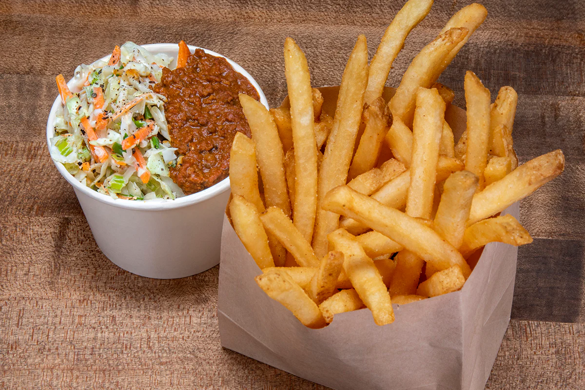 fries, haus chili, haus slaw