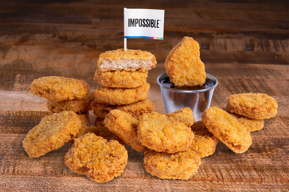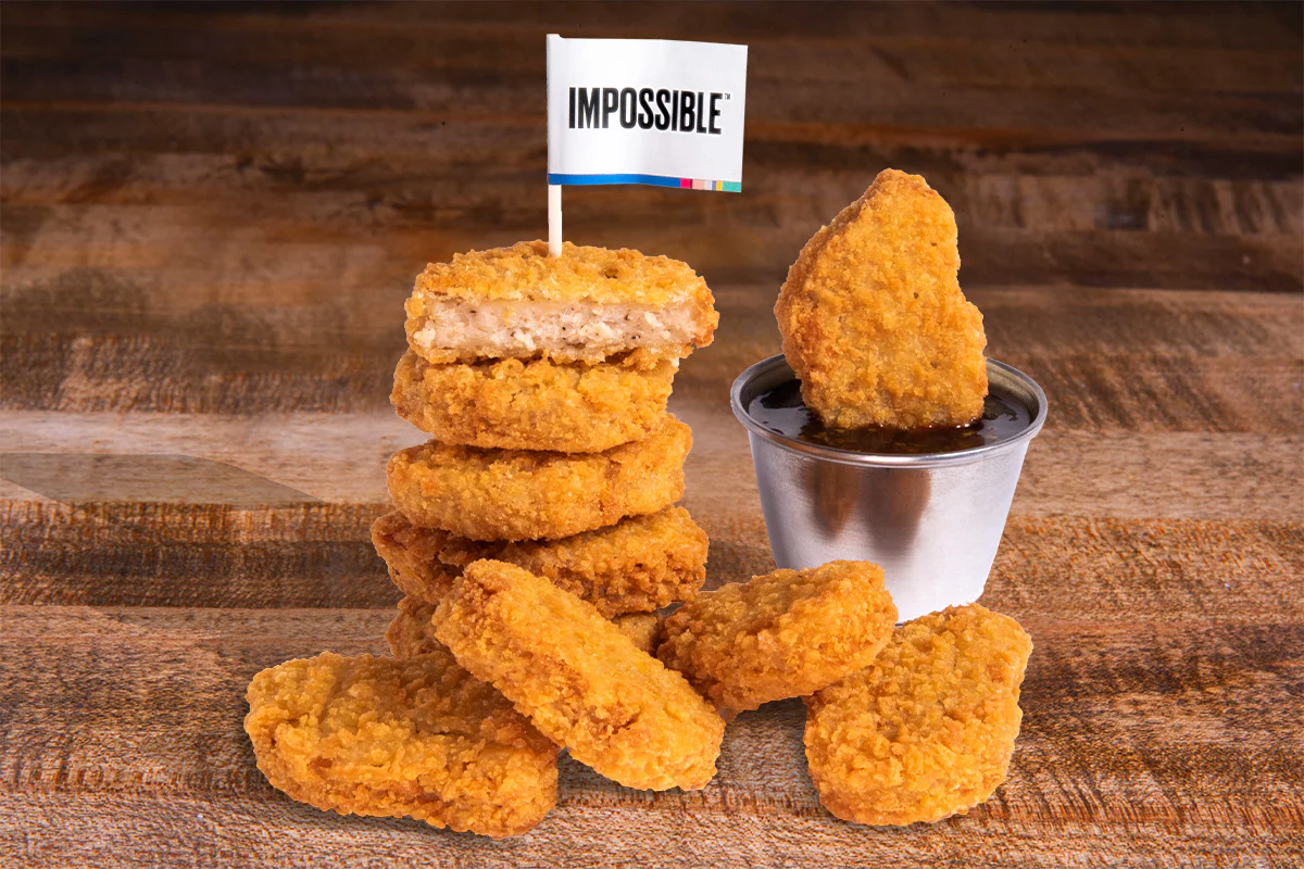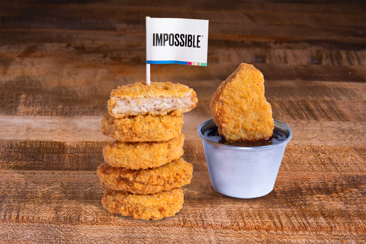 Crispy fried Impossible chicken nuggets; served with choice of dipping sauce plant-based/vegetarian protein