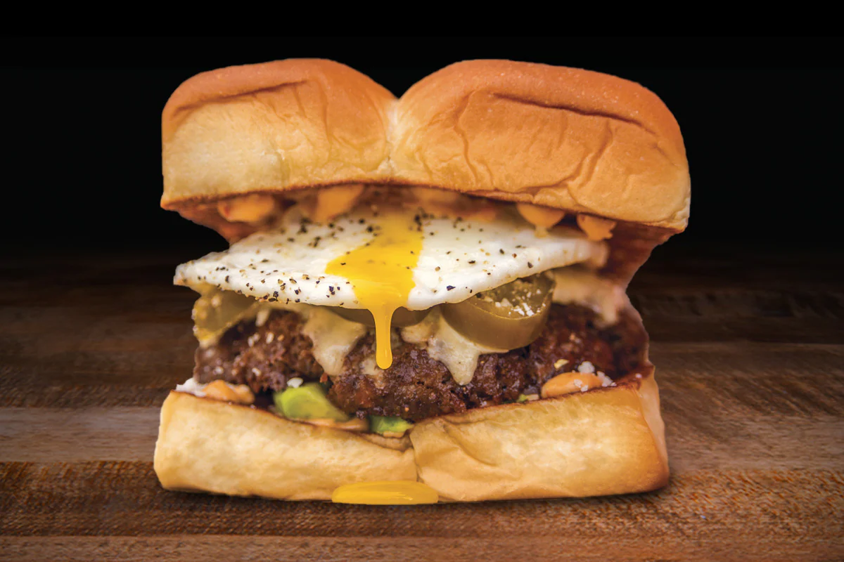 white american cheese, avocado, pickled jalapeños, cotija cheese, fried egg & chipotle aioli atop a smash burger made with hormone- and antibiotic-free creekstone farms' premium angus beef; on grilled king's hawaiian rolls