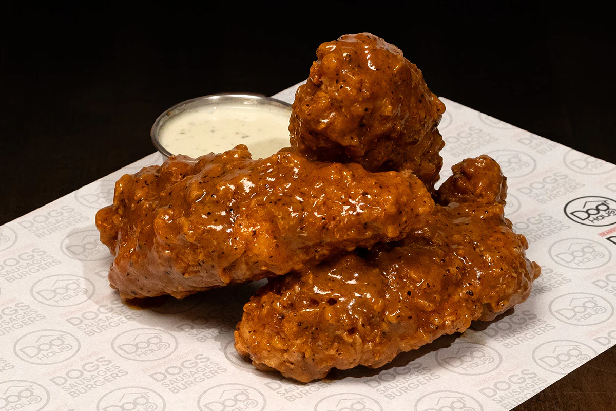 haus slaw, pickles & secret sauce atop two nashville style fried or grilled hormone- and antibiotic-free chicken tenders; on grilled king's hawaiian rolls