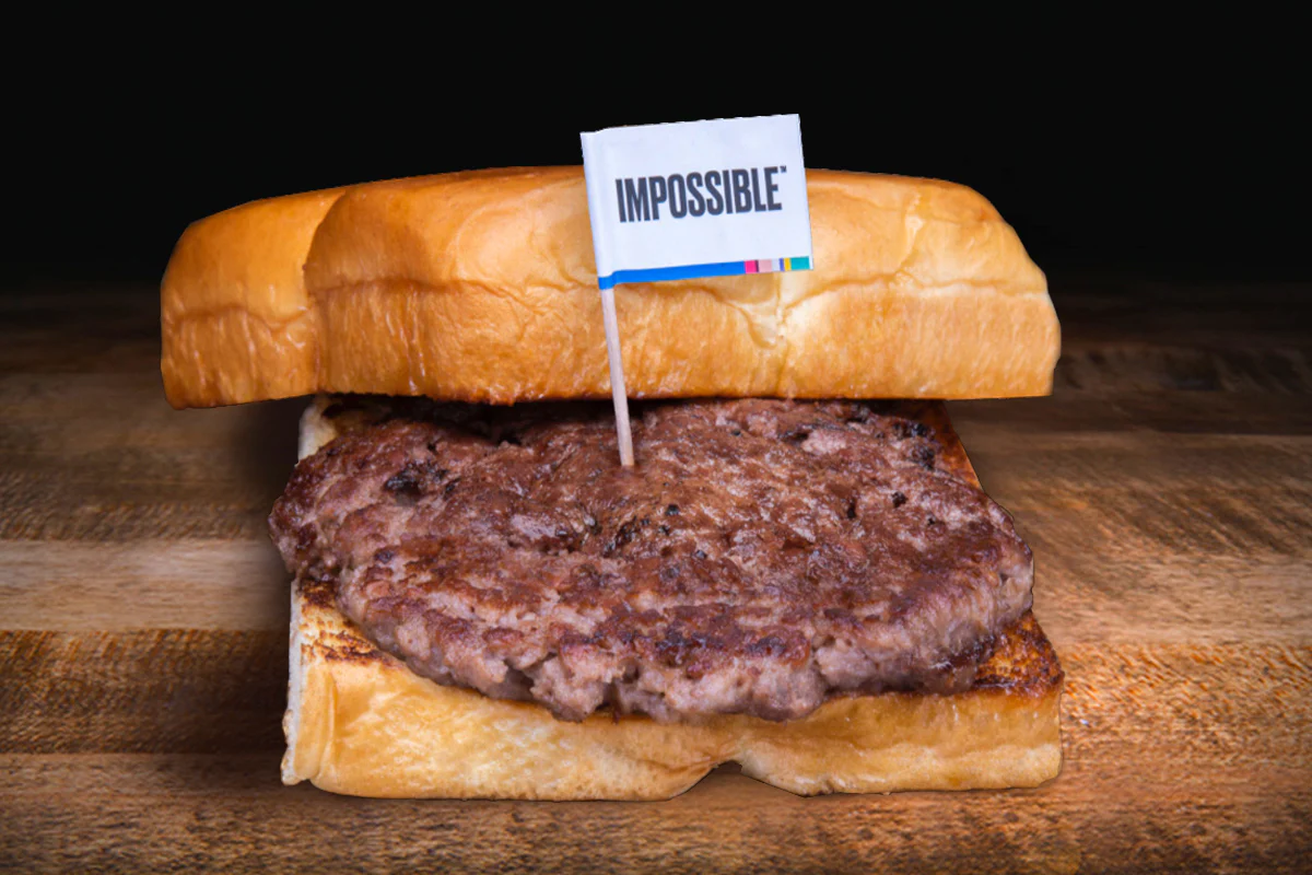 smash burger made with impossible® plant-based patty; on grilled king's hawaiian rolls