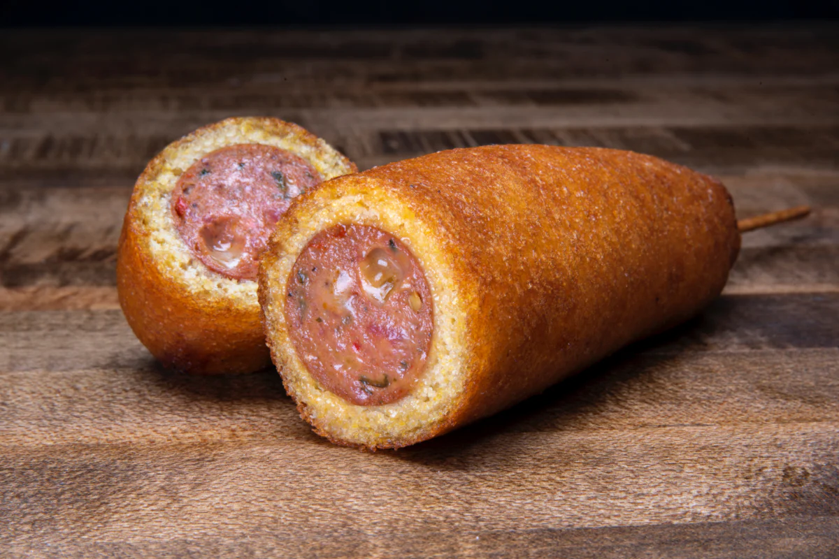 our proprietary hormone- and antibiotic-free premium sausages dipped in haus made root beer batter; made to order