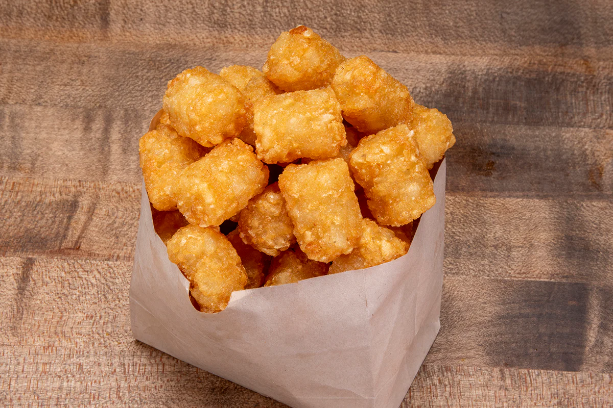 3 fresh eggs, impossible™ sausage patty, white american cheese, crispy tater tots, caramelized onions & spicy mayo wrapped in a flour tortilla then grilled.